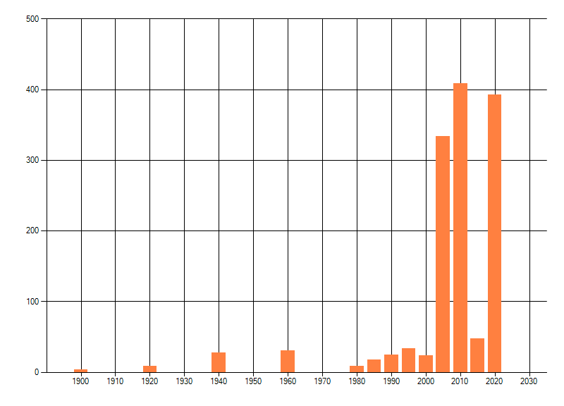 Het aantal atlasblokken (5x5 km) waarin de soort is gemeld binnen een periode van vijf jaar (vanaf 1980) of twintig jaar. Niet gecorrigeerd voor waarnemersinspanning en het aantal doorgegeven waarnemingen kan sterk variëren per periode, dus een trend in verspreiding kan hier niet direct uit worden afgelezen. Het opgegeven jaartal is het eerste jaar van de periode. Bron: gevalideerde waarnemingen uit de NDFF.