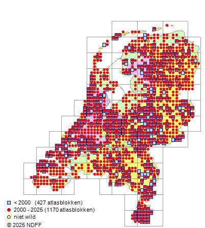 Bron: FLORON - Gemodelleerd op basis van waarnemingen uit de NDFF voor de periode 2000-2021.