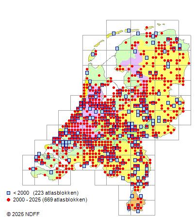 Bron: FLORON - Gemodelleerd op basis van waarnemingen uit de NDFF voor de periode 2000-2021.