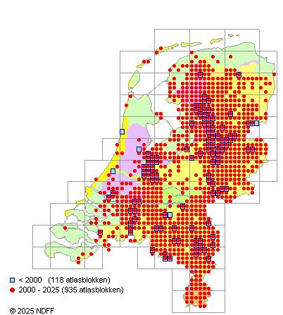 Bron: FLORON - Gemodelleerd op basis van waarnemingen uit de NDFF voor de periode 2000-2021.