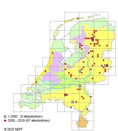Bron: FLORON - Gemodelleerd op basis van waarnemingen uit de NDFF voor de periode 2000-2021.