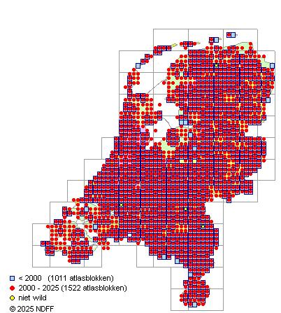 Bron: FLORON - Gemodelleerd op basis van waarnemingen uit de NDFF voor de periode 2000-2021.