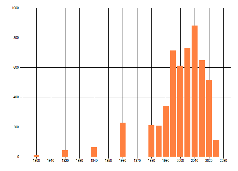 Het aantal atlasblokken (5x5 km) waarin de soort is gemeld binnen een periode van vijf jaar (vanaf 1980) of twintig jaar. Niet gecorrigeerd voor waarnemersinspanning en het aantal doorgegeven waarnemingen kan sterk variëren per periode, dus een trend in verspreiding kan hier niet direct uit worden afgelezen. Het opgegeven jaartal is het eerste jaar van de periode. Bron: gevalideerde waarnemingen uit de NDFF.