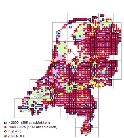 Bron: FLORON - Gemodelleerd op basis van waarnemingen uit de NDFF voor de periode 2000-2021.