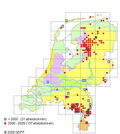 Bron: FLORON - Gemodelleerd op basis van waarnemingen uit de NDFF voor de periode 2000-2021.