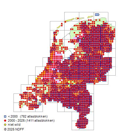 Bron: FLORON - Gemodelleerd op basis van waarnemingen uit de NDFF voor de periode 2000-2021.
