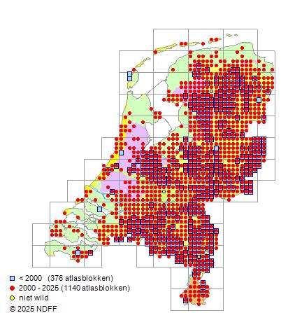 Bron: FLORON - Gemodelleerd op basis van waarnemingen uit de NDFF voor de periode 2000-2021.