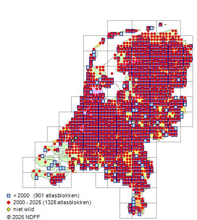 Bron: FLORON - Gemodelleerd op basis van waarnemingen uit de NDFF voor de periode 2000-2021.
