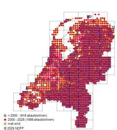 Bron: FLORON - Gemodelleerd op basis van waarnemingen uit de NDFF voor de periode 2000-2021.