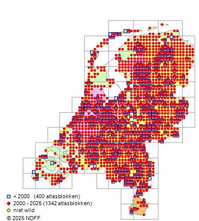 Bron: FLORON - Gemodelleerd op basis van waarnemingen uit de NDFF voor de periode 2000-2021.