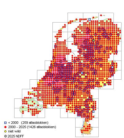 Bron: FLORON - Gemodelleerd op basis van waarnemingen uit de NDFF voor de periode 2000-2021.