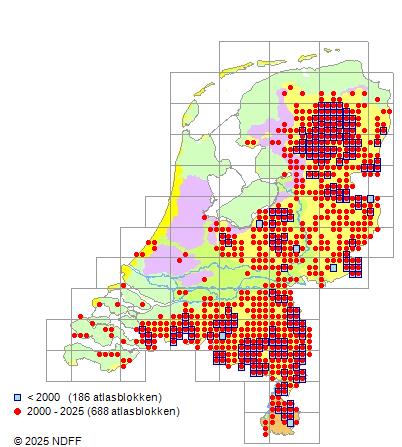 Bron: FLORON - Gemodelleerd op basis van waarnemingen uit de NDFF voor de periode 2000-2021.
