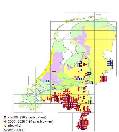Bron: FLORON - Gemodelleerd op basis van waarnemingen uit de NDFF voor de periode 2000-2021.