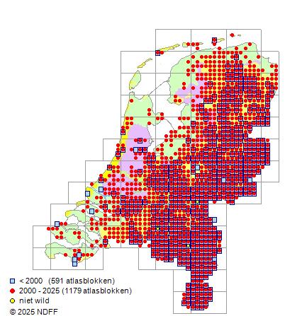 Bron: FLORON - Gemodelleerd op basis van waarnemingen uit de NDFF voor de periode 2000-2021.