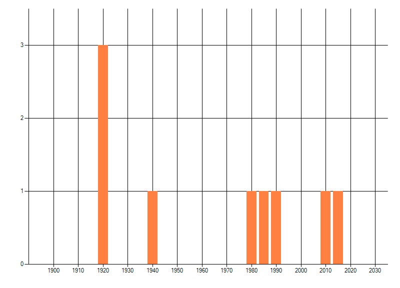 Het aantal atlasblokken (5x5 km) waarin de soort is gemeld binnen een periode van vijf jaar (vanaf 1980) of twintig jaar. Niet gecorrigeerd voor waarnemersinspanning en het aantal doorgegeven waarnemingen kan sterk variëren per periode, dus een trend in verspreiding kan hier niet direct uit worden afgelezen. Het opgegeven jaartal is het eerste jaar van de periode. Bron: gevalideerde waarnemingen uit de NDFF.