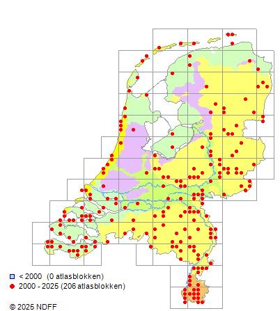 Bron: FLORON - Gemodelleerd op basis van waarnemingen uit de NDFF voor de periode 2000-2021.
