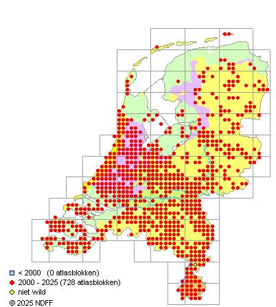 Bron: FLORON - Gemodelleerd op basis van waarnemingen uit de NDFF voor de periode 2000-2021.
