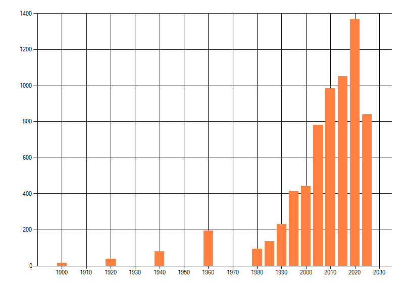 Het aantal atlasblokken (5x5 km) waarin de soort is gemeld binnen een periode van vijf jaar (vanaf 1980) of twintig jaar. Niet gecorrigeerd voor waarnemersinspanning en het aantal doorgegeven waarnemingen kan sterk variëren per periode, dus een trend in verspreiding kan hier niet direct uit worden afgelezen. Het opgegeven jaartal is het eerste jaar van de periode. Bron: gevalideerde waarnemingen uit de NDFF.