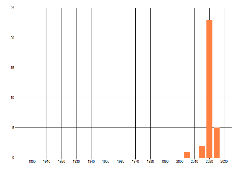 Het aantal atlasblokken (5x5 km) waarin de soort is gemeld binnen een periode van vijf jaar (vanaf 1980) of twintig jaar. Niet gecorrigeerd voor waarnemersinspanning en het aantal doorgegeven waarnemingen kan sterk variëren per periode, dus een trend in verspreiding kan hier niet direct uit worden afgelezen. Het opgegeven jaartal is het eerste jaar van de periode. Bron: gevalideerde waarnemingen uit de NDFF.