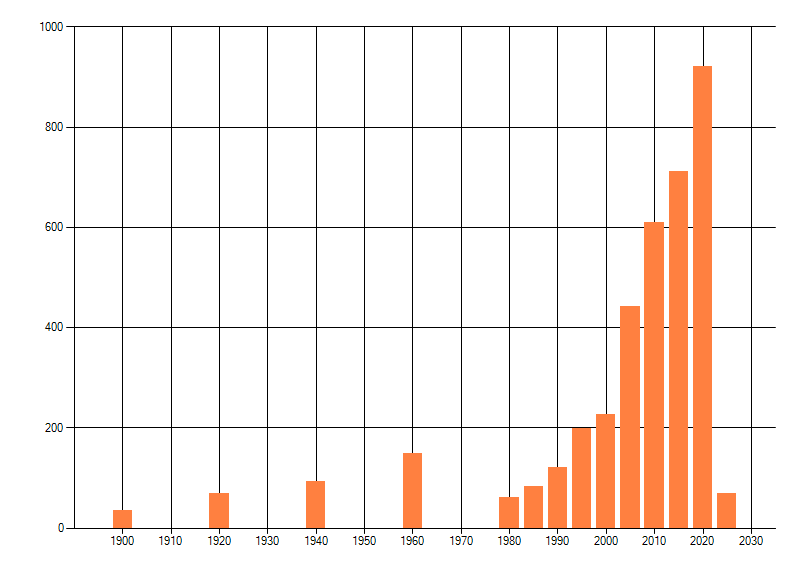 Het aantal atlasblokken (5x5 km) waarin de soort is gemeld binnen een periode van vijf jaar (vanaf 1980) of twintig jaar. Niet gecorrigeerd voor waarnemersinspanning en het aantal doorgegeven waarnemingen kan sterk variëren per periode, dus een trend in verspreiding kan hier niet direct uit worden afgelezen. Het opgegeven jaartal is het eerste jaar van de periode. Bron: gevalideerde waarnemingen uit de NDFF.