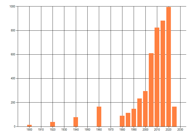 Het aantal atlasblokken (5x5 km) waarin de soort is gemeld binnen een periode van vijf jaar (vanaf 1980) of twintig jaar. Niet gecorrigeerd voor waarnemersinspanning en het aantal doorgegeven waarnemingen kan sterk variëren per periode, dus een trend in verspreiding kan hier niet direct uit worden afgelezen. Het opgegeven jaartal is het eerste jaar van de periode. Bron: gevalideerde waarnemingen uit de NDFF.