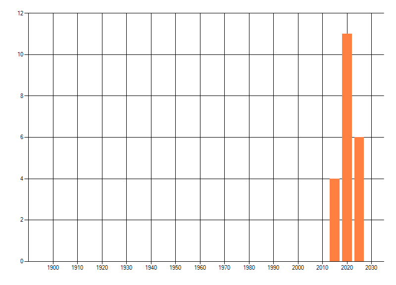 Het aantal atlasblokken (5x5 km) waarin de soort is gemeld binnen een periode van vijf jaar (vanaf 1980) of twintig jaar. Niet gecorrigeerd voor waarnemersinspanning en het aantal doorgegeven waarnemingen kan sterk variƫren per periode, dus een trend in verspreiding kan hier niet direct uit worden afgelezen. Het opgegeven jaartal is het eerste jaar van de periode. Bron: gevalideerde waarnemingen uit de NDFF.
