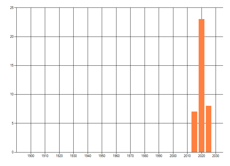 Het aantal atlasblokken (5x5 km) waarin de soort is gemeld binnen een periode van vijf jaar (vanaf 1980) of twintig jaar. Niet gecorrigeerd voor waarnemersinspanning en het aantal doorgegeven waarnemingen kan sterk variëren per periode, dus een trend in verspreiding kan hier niet direct uit worden afgelezen. Het opgegeven jaartal is het eerste jaar van de periode. Bron: gevalideerde waarnemingen uit de NDFF.