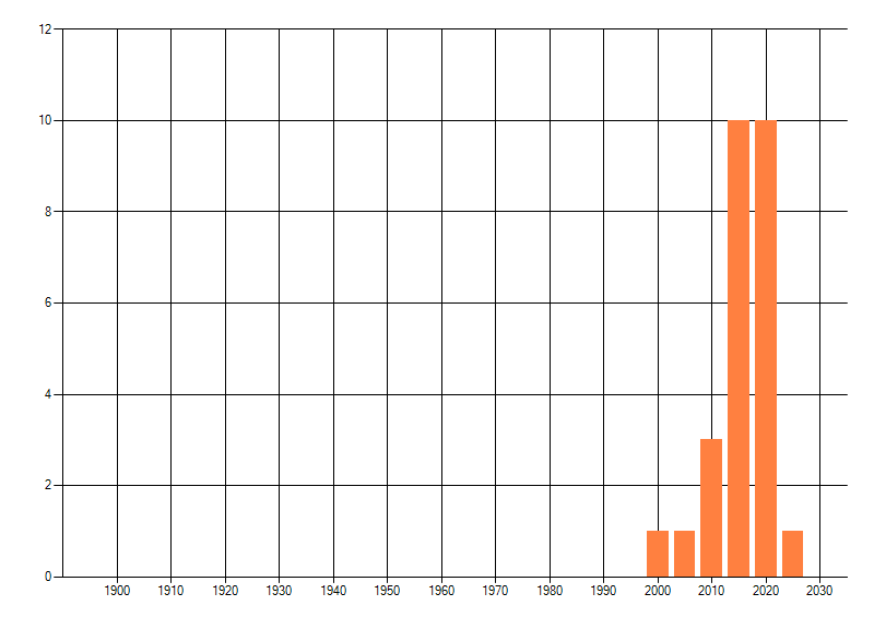 Het aantal atlasblokken (5x5 km) waarin de soort is gemeld binnen een periode van vijf jaar (vanaf 1980) of twintig jaar. Niet gecorrigeerd voor waarnemersinspanning en het aantal doorgegeven waarnemingen kan sterk variëren per periode, dus een trend in verspreiding kan hier niet direct uit worden afgelezen. Het opgegeven jaartal is het eerste jaar van de periode. Bron: gevalideerde waarnemingen uit de NDFF.
