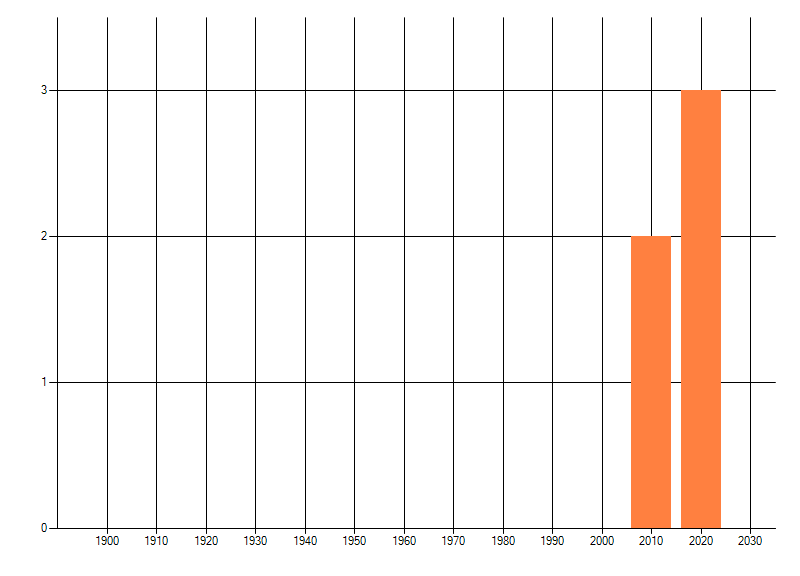 Het aantal atlasblokken (5x5 km) waarin de soort is gemeld binnen een periode van vijf jaar (vanaf 1980) of twintig jaar. Niet gecorrigeerd voor waarnemersinspanning en het aantal doorgegeven waarnemingen kan sterk variëren per periode, dus een trend in verspreiding kan hier niet direct uit worden afgelezen. Het opgegeven jaartal is het eerste jaar van de periode. Bron: gevalideerde waarnemingen uit de NDFF.