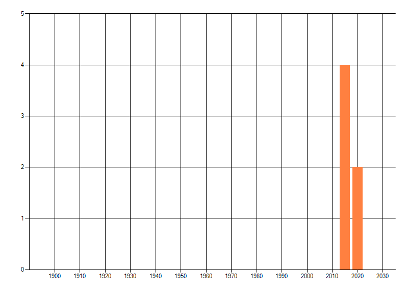 Het aantal atlasblokken (5x5 km) waarin de soort is gemeld binnen een periode van vijf jaar (vanaf 1980) of twintig jaar. Niet gecorrigeerd voor waarnemersinspanning en het aantal doorgegeven waarnemingen kan sterk variëren per periode, dus een trend in verspreiding kan hier niet direct uit worden afgelezen. Het opgegeven jaartal is het eerste jaar van de periode. Bron: gevalideerde waarnemingen uit de NDFF.