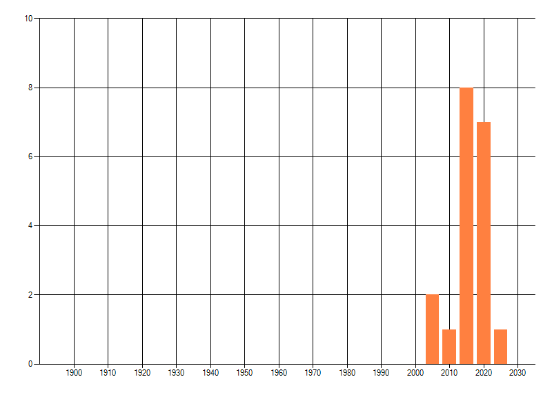 Het aantal atlasblokken (5x5 km) waarin de soort is gemeld binnen een periode van vijf jaar (vanaf 1980) of twintig jaar. Niet gecorrigeerd voor waarnemersinspanning en het aantal doorgegeven waarnemingen kan sterk variëren per periode, dus een trend in verspreiding kan hier niet direct uit worden afgelezen. Het opgegeven jaartal is het eerste jaar van de periode. Bron: gevalideerde waarnemingen uit de NDFF.