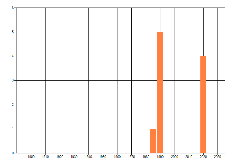 Het aantal atlasblokken (5x5 km) waarin de soort is gemeld binnen een periode van vijf jaar (vanaf 1980) of twintig jaar. Niet gecorrigeerd voor waarnemersinspanning en het aantal doorgegeven waarnemingen kan sterk variëren per periode, dus een trend in verspreiding kan hier niet direct uit worden afgelezen. Het opgegeven jaartal is het eerste jaar van de periode. Bron: gevalideerde waarnemingen uit de NDFF.