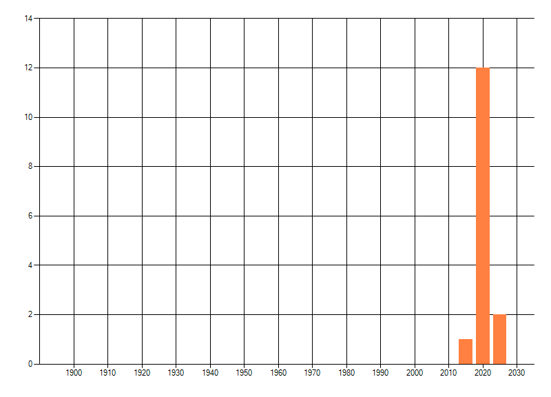 Het aantal atlasblokken (5x5 km) waarin de soort is gemeld binnen een periode van vijf jaar (vanaf 1980) of twintig jaar. Niet gecorrigeerd voor waarnemersinspanning en het aantal doorgegeven waarnemingen kan sterk variëren per periode, dus een trend in verspreiding kan hier niet direct uit worden afgelezen. Het opgegeven jaartal is het eerste jaar van de periode. Bron: gevalideerde waarnemingen uit de NDFF.