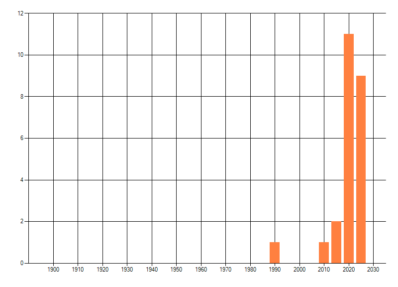 Het aantal atlasblokken (5x5 km) waarin de soort is gemeld binnen een periode van vijf jaar (vanaf 1980) of twintig jaar. Niet gecorrigeerd voor waarnemersinspanning en het aantal doorgegeven waarnemingen kan sterk variëren per periode, dus een trend in verspreiding kan hier niet direct uit worden afgelezen. Het opgegeven jaartal is het eerste jaar van de periode. Bron: gevalideerde waarnemingen uit de NDFF.