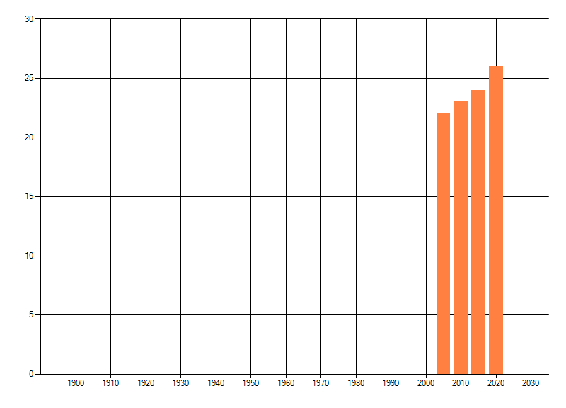 Het aantal atlasblokken (5x5 km) waarin de soort is gemeld binnen een periode van vijf jaar (vanaf 1980) of twintig jaar. Niet gecorrigeerd voor waarnemersinspanning en het aantal doorgegeven waarnemingen kan sterk variëren per periode, dus een trend in verspreiding kan hier niet direct uit worden afgelezen. Het opgegeven jaartal is het eerste jaar van de periode. Bron: gevalideerde waarnemingen uit de NDFF.