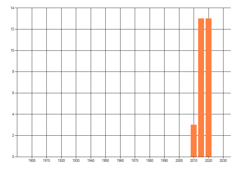 Het aantal atlasblokken (5x5 km) waarin de soort is gemeld binnen een periode van vijf jaar (vanaf 1980) of twintig jaar. Niet gecorrigeerd voor waarnemersinspanning en het aantal doorgegeven waarnemingen kan sterk variëren per periode, dus een trend in verspreiding kan hier niet direct uit worden afgelezen. Het opgegeven jaartal is het eerste jaar van de periode. Bron: gevalideerde waarnemingen uit de NDFF.