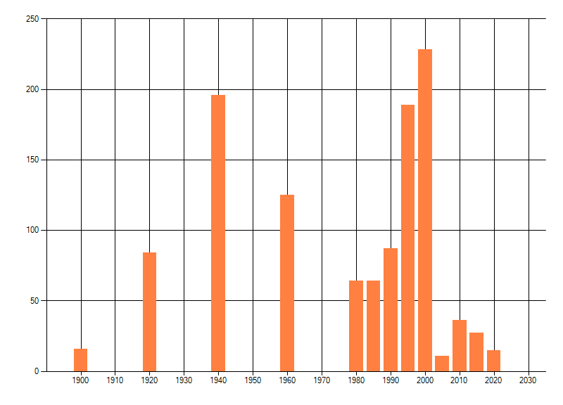 Het aantal atlasblokken (5x5 km) waarin de soort is gemeld binnen een periode van vijf jaar (vanaf 1980) of twintig jaar. Niet gecorrigeerd voor waarnemersinspanning en het aantal doorgegeven waarnemingen kan sterk variëren per periode, dus een trend in verspreiding kan hier niet direct uit worden afgelezen. Het opgegeven jaartal is het eerste jaar van de periode. Bron: gevalideerde waarnemingen uit de NDFF.