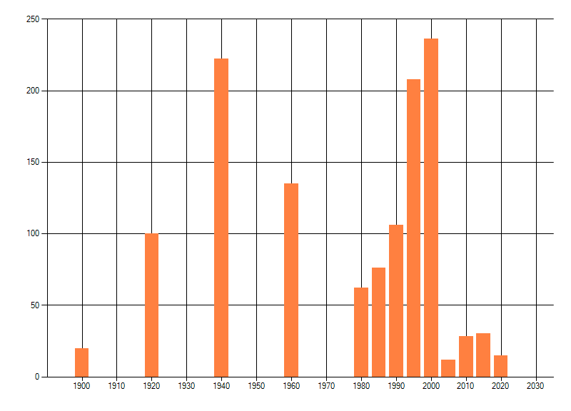 Het aantal atlasblokken (5x5 km) waarin de soort is gemeld binnen een periode van vijf jaar (vanaf 1980) of twintig jaar. Niet gecorrigeerd voor waarnemersinspanning en het aantal doorgegeven waarnemingen kan sterk variëren per periode, dus een trend in verspreiding kan hier niet direct uit worden afgelezen. Het opgegeven jaartal is het eerste jaar van de periode. Bron: gevalideerde waarnemingen uit de NDFF.