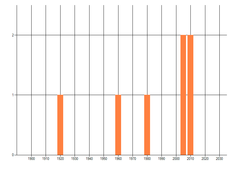 Het aantal atlasblokken (5x5 km) waarin de soort is gemeld binnen een periode van vijf jaar (vanaf 1980) of twintig jaar. Niet gecorrigeerd voor waarnemersinspanning en het aantal doorgegeven waarnemingen kan sterk variëren per periode, dus een trend in verspreiding kan hier niet direct uit worden afgelezen. Het opgegeven jaartal is het eerste jaar van de periode. Bron: gevalideerde waarnemingen uit de NDFF.