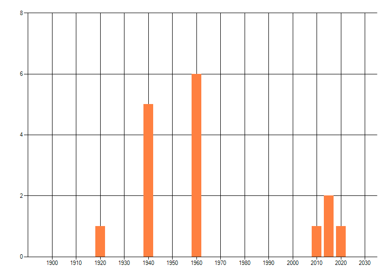 Het aantal atlasblokken (5x5 km) waarin de soort is gemeld binnen een periode van vijf jaar (vanaf 1980) of twintig jaar. Niet gecorrigeerd voor waarnemersinspanning en het aantal doorgegeven waarnemingen kan sterk variëren per periode, dus een trend in verspreiding kan hier niet direct uit worden afgelezen. Het opgegeven jaartal is het eerste jaar van de periode. Bron: gevalideerde waarnemingen uit de NDFF.