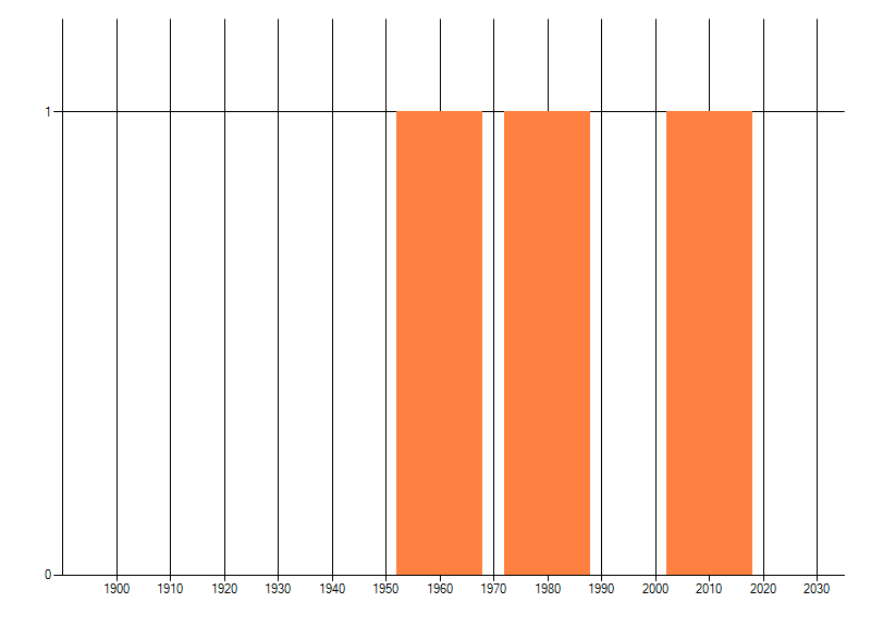 Het aantal atlasblokken (5x5 km) waarin de soort is gemeld binnen een periode van vijf jaar (vanaf 1980) of twintig jaar. Niet gecorrigeerd voor waarnemersinspanning en het aantal doorgegeven waarnemingen kan sterk variëren per periode, dus een trend in verspreiding kan hier niet direct uit worden afgelezen. Het opgegeven jaartal is het eerste jaar van de periode. Bron: gevalideerde waarnemingen uit de NDFF.