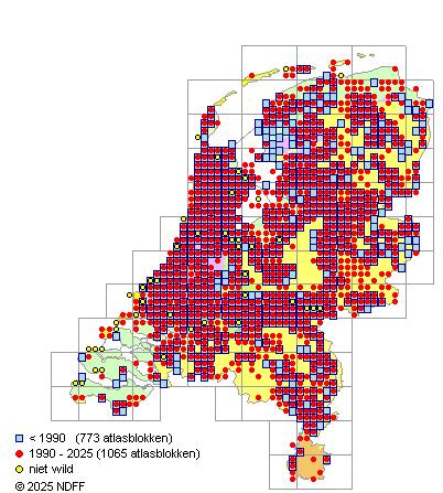 Bron: FLORON - Gemodelleerd op basis van waarnemingen uit de NDFF voor de periode 2000-2021.