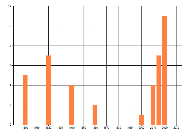 Het aantal atlasblokken (5x5 km) waarin de soort is gemeld binnen een periode van vijf jaar (vanaf 1980) of twintig jaar. Niet gecorrigeerd voor waarnemersinspanning en het aantal doorgegeven waarnemingen kan sterk variëren per periode, dus een trend in verspreiding kan hier niet direct uit worden afgelezen. Het opgegeven jaartal is het eerste jaar van de periode. Bron: gevalideerde waarnemingen uit de NDFF.