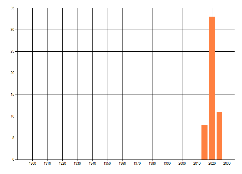 Het aantal atlasblokken (5x5 km) waarin de soort is gemeld binnen een periode van vijf jaar (vanaf 1980) of twintig jaar. Niet gecorrigeerd voor waarnemersinspanning en het aantal doorgegeven waarnemingen kan sterk variëren per periode, dus een trend in verspreiding kan hier niet direct uit worden afgelezen. Het opgegeven jaartal is het eerste jaar van de periode. Bron: gevalideerde waarnemingen uit de NDFF.