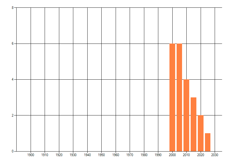 Het aantal atlasblokken (5x5 km) waarin de soort is gemeld binnen een periode van vijf jaar (vanaf 1980) of twintig jaar. Niet gecorrigeerd voor waarnemersinspanning en het aantal doorgegeven waarnemingen kan sterk variëren per periode, dus een trend in verspreiding kan hier niet direct uit worden afgelezen. Het opgegeven jaartal is het eerste jaar van de periode. Bron: gevalideerde waarnemingen uit de NDFF.