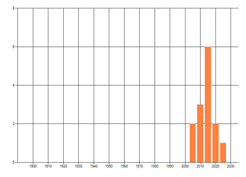 Het aantal atlasblokken (5x5 km) waarin de soort is gemeld binnen een periode van vijf jaar (vanaf 1980) of twintig jaar. Niet gecorrigeerd voor waarnemersinspanning en het aantal doorgegeven waarnemingen kan sterk variëren per periode, dus een trend in verspreiding kan hier niet direct uit worden afgelezen. Het opgegeven jaartal is het eerste jaar van de periode. Bron: gevalideerde waarnemingen uit de NDFF.