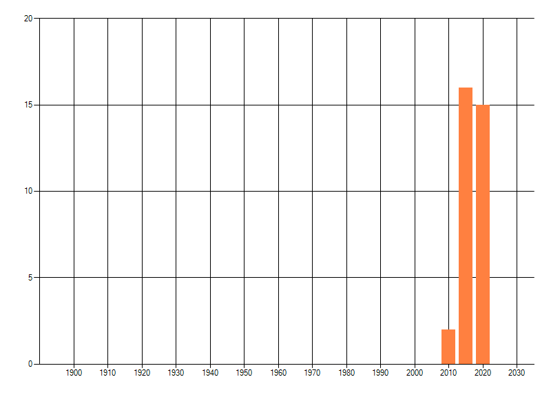 Het aantal atlasblokken (5x5 km) waarin de soort is gemeld binnen een periode van vijf jaar (vanaf 1980) of twintig jaar. Niet gecorrigeerd voor waarnemersinspanning en het aantal doorgegeven waarnemingen kan sterk variëren per periode, dus een trend in verspreiding kan hier niet direct uit worden afgelezen. Het opgegeven jaartal is het eerste jaar van de periode. Bron: gevalideerde waarnemingen uit de NDFF.