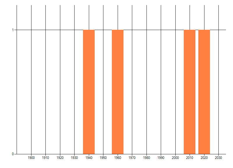 Het aantal atlasblokken (5x5 km) waarin de soort is gemeld binnen een periode van vijf jaar (vanaf 1980) of twintig jaar. Niet gecorrigeerd voor waarnemersinspanning en het aantal doorgegeven waarnemingen kan sterk variëren per periode, dus een trend in verspreiding kan hier niet direct uit worden afgelezen. Het opgegeven jaartal is het eerste jaar van de periode. Bron: gevalideerde waarnemingen uit de NDFF.