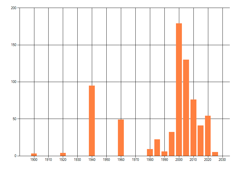 Het aantal atlasblokken (5x5 km) waarin de soort is gemeld binnen een periode van vijf jaar (vanaf 1980) of twintig jaar. Niet gecorrigeerd voor waarnemersinspanning en het aantal doorgegeven waarnemingen kan sterk variëren per periode, dus een trend in verspreiding kan hier niet direct uit worden afgelezen. Het opgegeven jaartal is het eerste jaar van de periode. Bron: gevalideerde waarnemingen uit de NDFF.