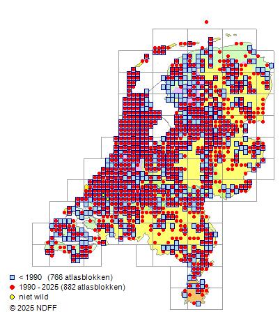 Bron: FLORON - Gemodelleerd op basis van waarnemingen uit de NDFF voor de periode 2000-2021.